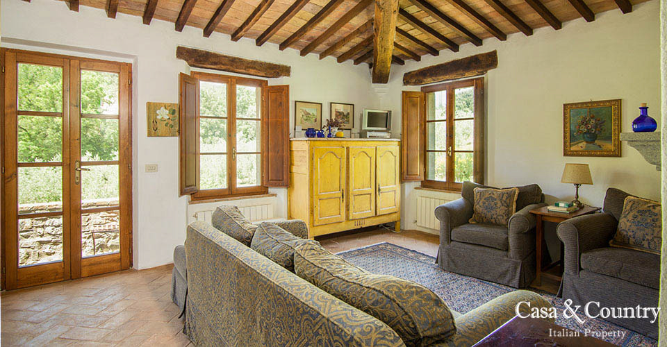 Il piano terra: composto da un ampio ingresso/ufficio, una biblioteca e un soggiorno caratterizzato da ampi soffitti, archi in mattoni originali e camino (con un affresco che ricorda la macina creato da Sesti), una cucina che comprende un camino a legna e un’ampia cabina dispensa, una sala da pranzo formale che dispone anch’essa di camino.