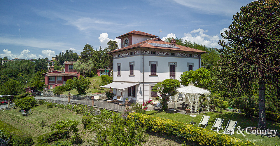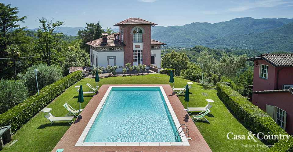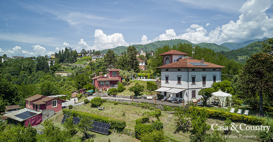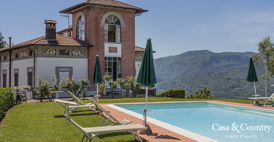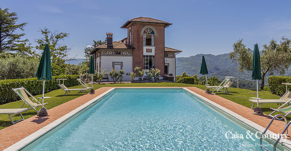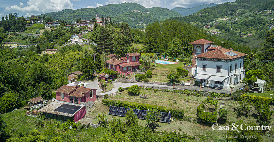 The properties are set amidst a verdant private park with sweeping views of Tuscany’s mountain landscapes, this exquisite Liberty-style villa stands as a testament to a bygone era of elegance and artistic grandeur. Located just a 5-minute stroll from the medieval town of Barga, the villa offers the rare combination of architectural significance, serene privacy, and walking proximity to one of Tuscany’s most enchanting villages. This historic villa spans approximately 400 sqm over two main levels, plus a panoramic tower room offering breathtaking views of the Apuan Alps.