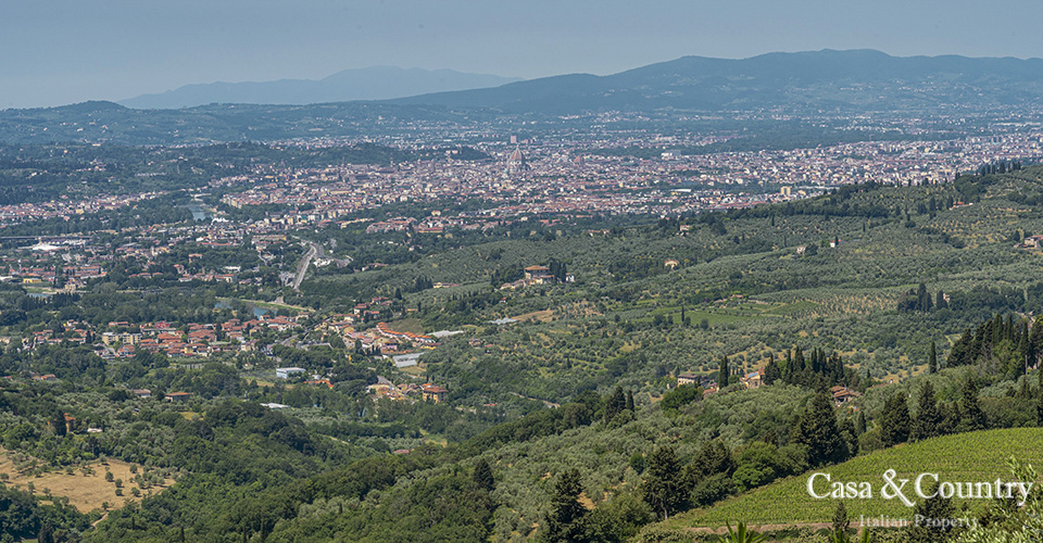 Set in the exclusive hills immediately above Florence, this distinguished villa enjoys commanding views across the skyline of Florence, with its celebrated Duomo and Renaissance monuments framed against the Tuscan landscape.