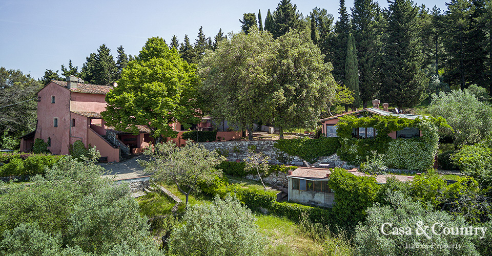 Encompassing approximately 2 hectares of private land, the estate includes a noble main villa, a guesthouse, and landscaped grounds with a swimming pool, pine forest, and silvery olive groves. The residence combines seclusion and privacy with proximity to the historic centre of Florence, which lies just minutes away.