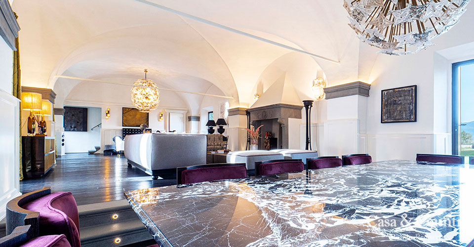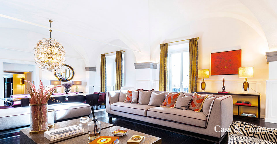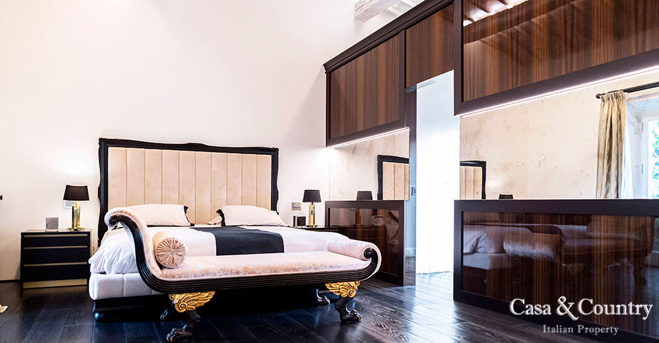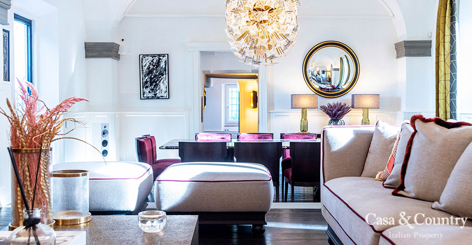 Внутренние пространства отличаются богатыми отделками, красивой мебелью и великолепными дизайнерскими элементами, которые гармонируют с оригинальным стилем и архитектурой с современными удобствами. Большие окна выходят на идеально ухоженные сады, создавая по-настоящему уникальную и эксклюзивную атмосферу.