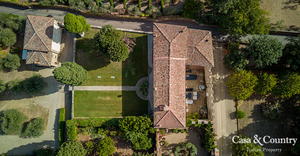 Эта уникальная недвижимость окружена садом площадью около 5000 м2, включающим оливковые рощи и кипарисы.